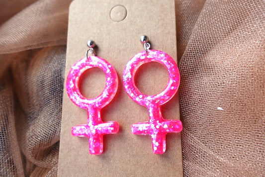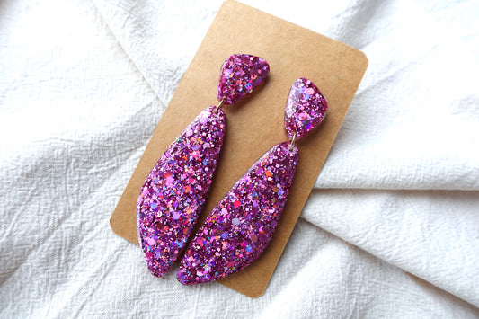 Roze glitter oorbellen met blauwe schijn - statement oorbellen Girl Power