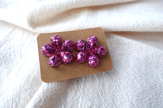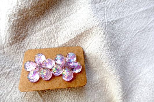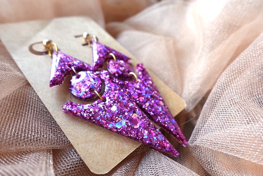 Halve bloem paarse glitter oorbellen - statement oorbellen