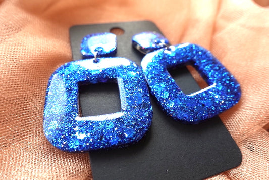 Vierkante donut koud blauwe glitter oorbellen - statement oorbellen