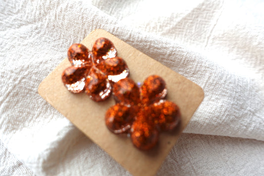 Bloem oranje holografische glitter midi oorstekertjes oorbellen