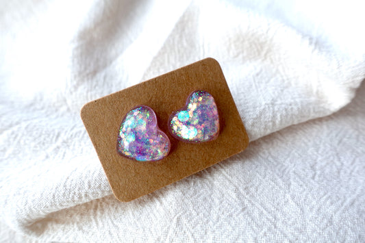 Hartjes 'opal' glitter oorbellen studs- statement oorbellen