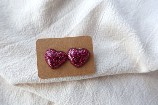 Hartjes maroon rode glitter oorbellen studs- statement oorbellen