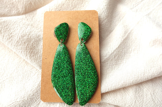 Libelle holografische groene glitter oorbellen met flakes - statement oorbellen