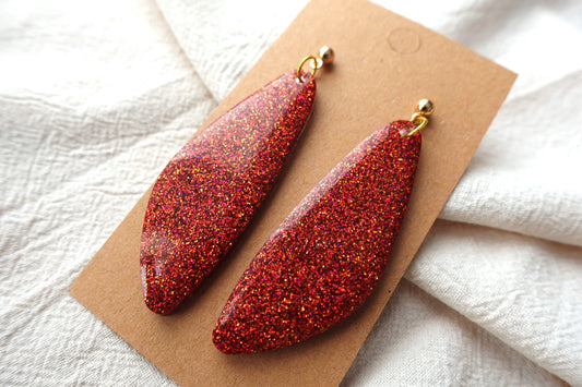 Rode holografische glitter oorbellen met knopje - statement oorbellen (libelle)