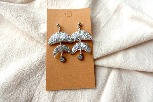 Halve maantjes zilveren holografische glitter oorbellen - statement oorbellen