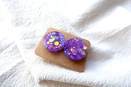 Lichtpaarse lila holografische glitter met flakes mini oorstekertjes oorbellen SKU 222