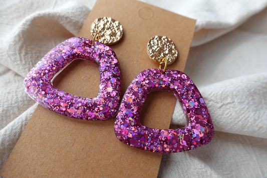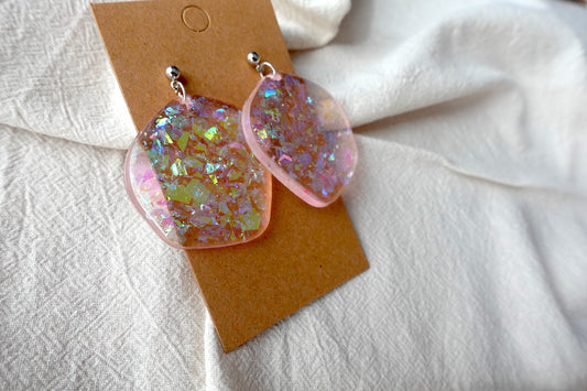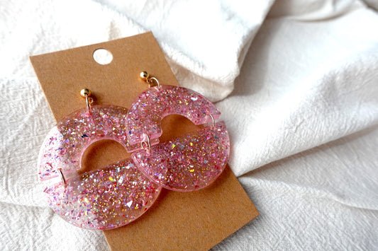 Organische Lichtroze oorbellen met glitter - statement oorbellen