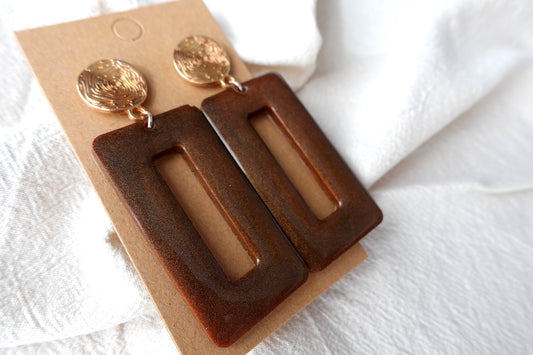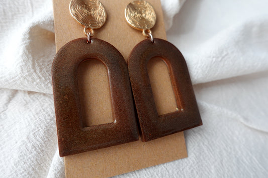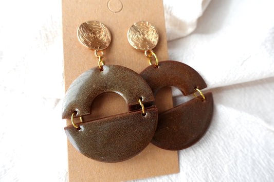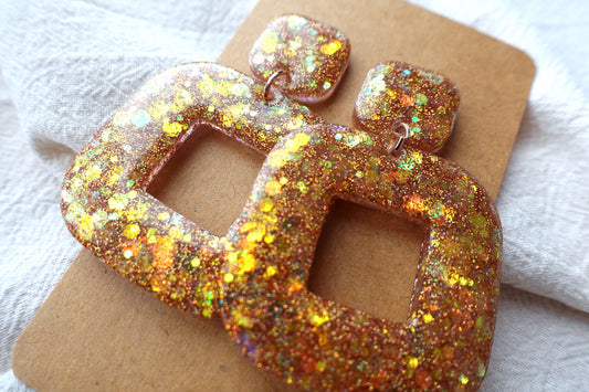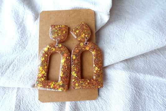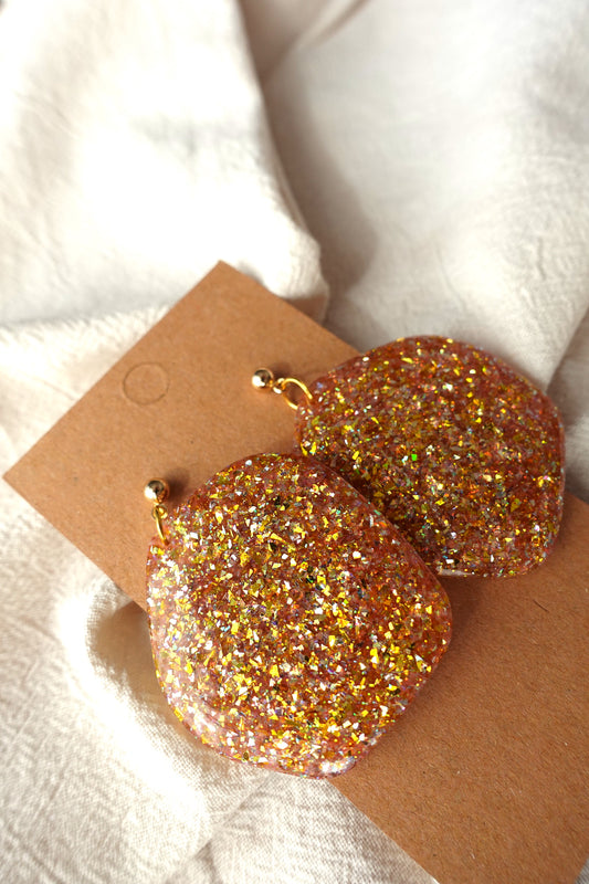 Organische goudkleurige oorbellen met holografische glitter - statement oorbellen