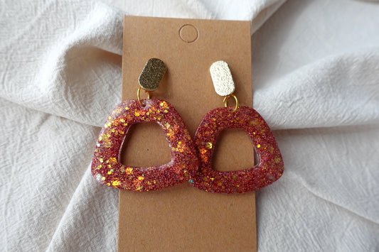 Trapezium donut oorbellen rode glitter oorbellen - statement oorbellen