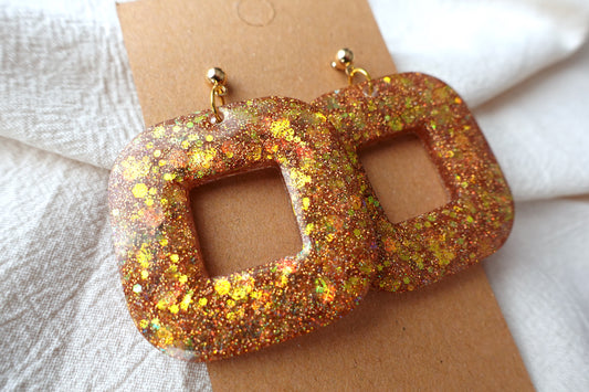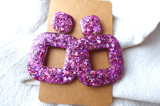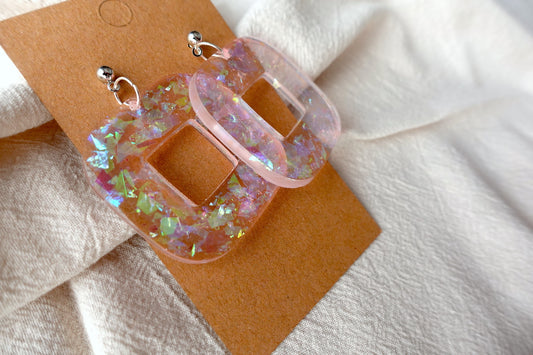 Vierkante donut transparante glitter oorbellen - statement oorbellen
