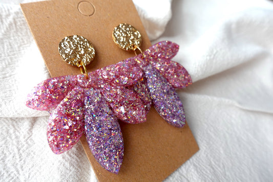 Bloem oorbellen met holografische glitter - statement oorbellen