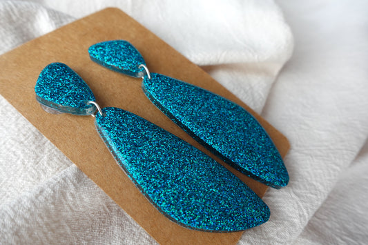 Vleugel turquoise oorbellen met holografische glitter - statement oorbellen