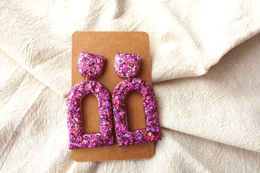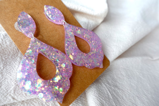 Boog oorbellen roze glitter holografische oorbellen - statement oorbellen