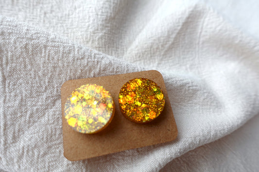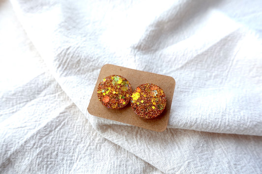 Warm gouden holografische mini oorstekertjes oorbellen met flakes SKU 211