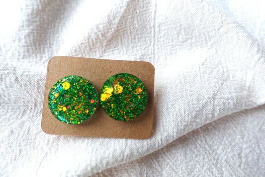 Groene holografische mini oorstekertjes oorbellen met flakes SKU 208