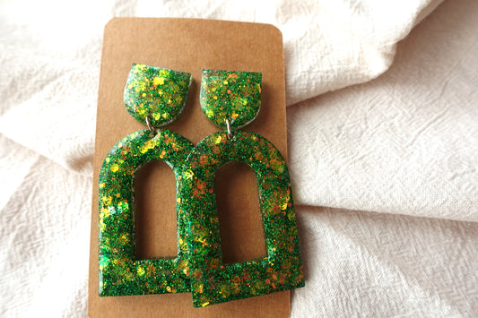 Boog oorbellen groene glitter holografische oorbellen - statement oorbellen