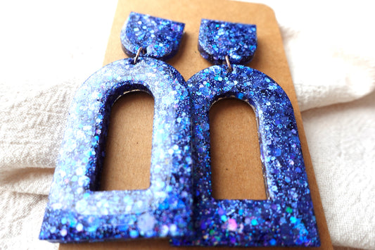Boog oorbellen donkerblauwe glitter holografische oorbellen - statement oorbellen