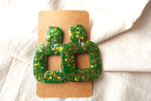 Vierkante donut oorbellen groene glitter holografische oorbellen - statement oorbellen