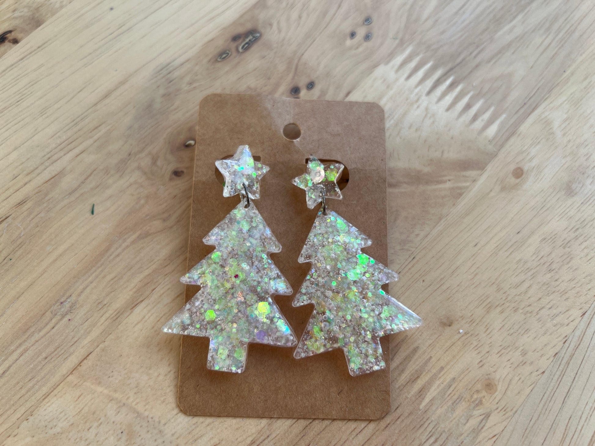 Prachtig glitterende kerstboom oorbellen, met de hand gemaakt. Deze oorbellen zijn gemaakt van resin en RVS.