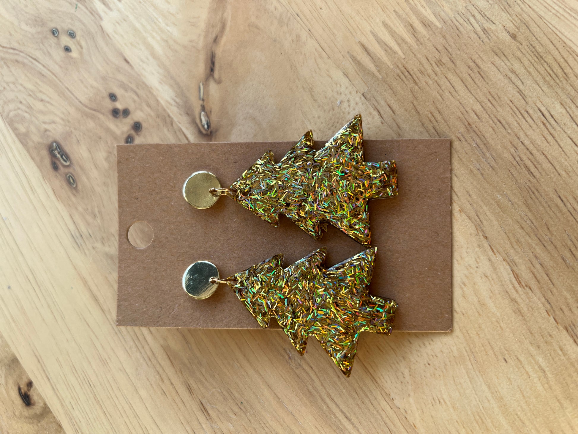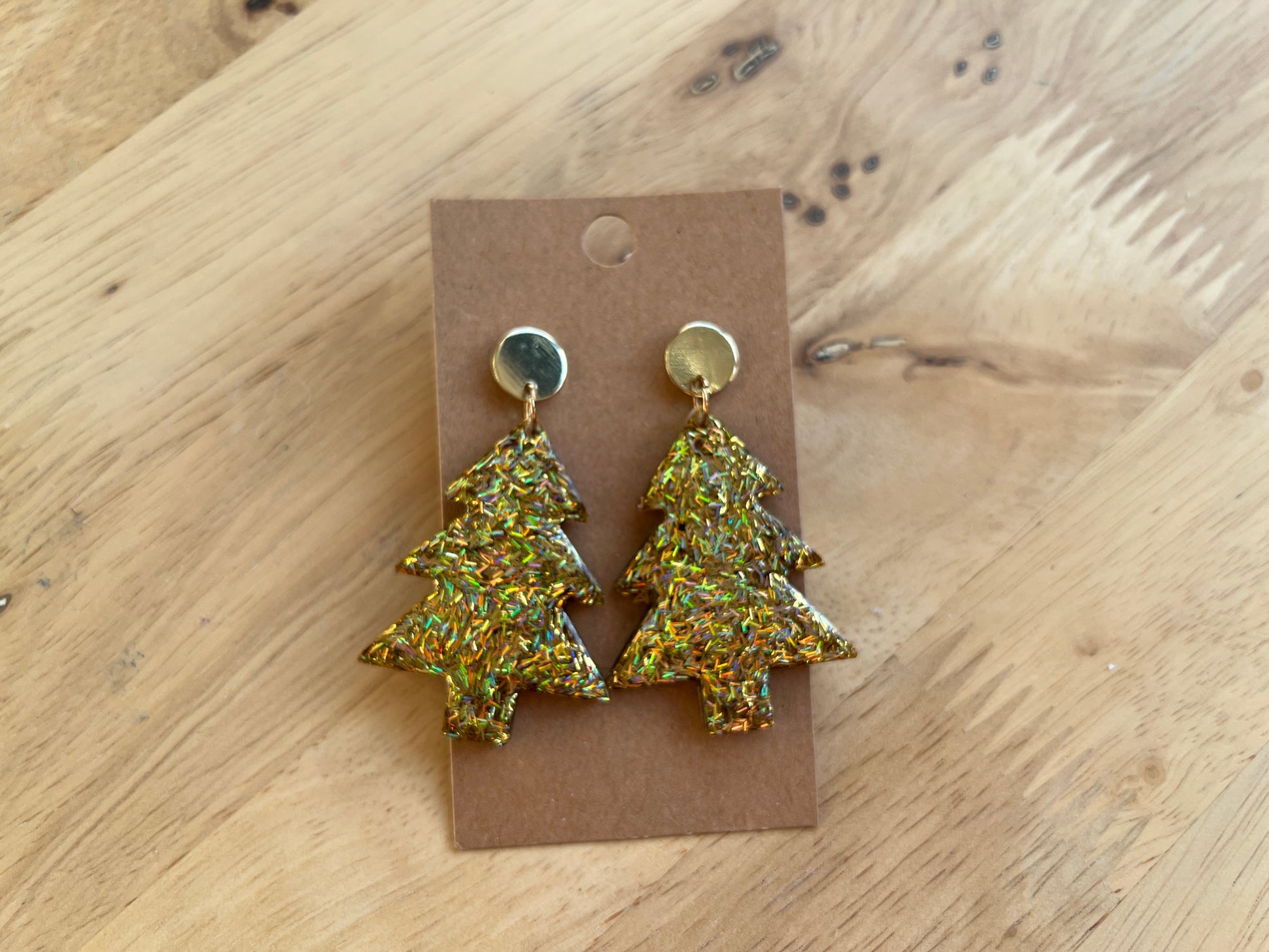 Prachtig glitterende kerstboom oorbellen, met de hand gemaakt. Deze oorbellen zijn gemaakt van resin en RVS.