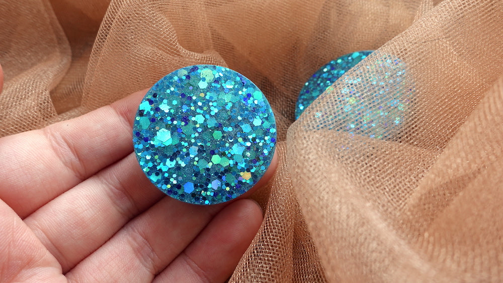 Maxi stud oorbellen, gemaakt van resin en glitter